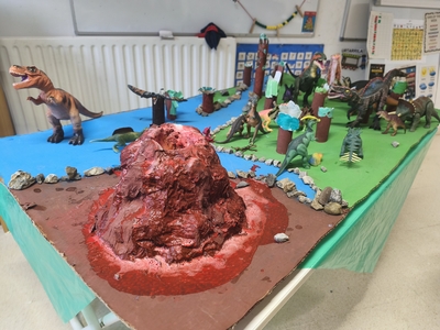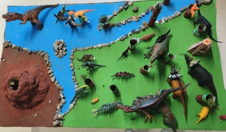 LH1ean Dinosauroen garaira bidaiatu dute denboraren makinaren laguntzaz. Garai hura ezagutu eta gelara itzulitakoan, dinosauroen mundu hura irudikatzeko maketa egin dute.