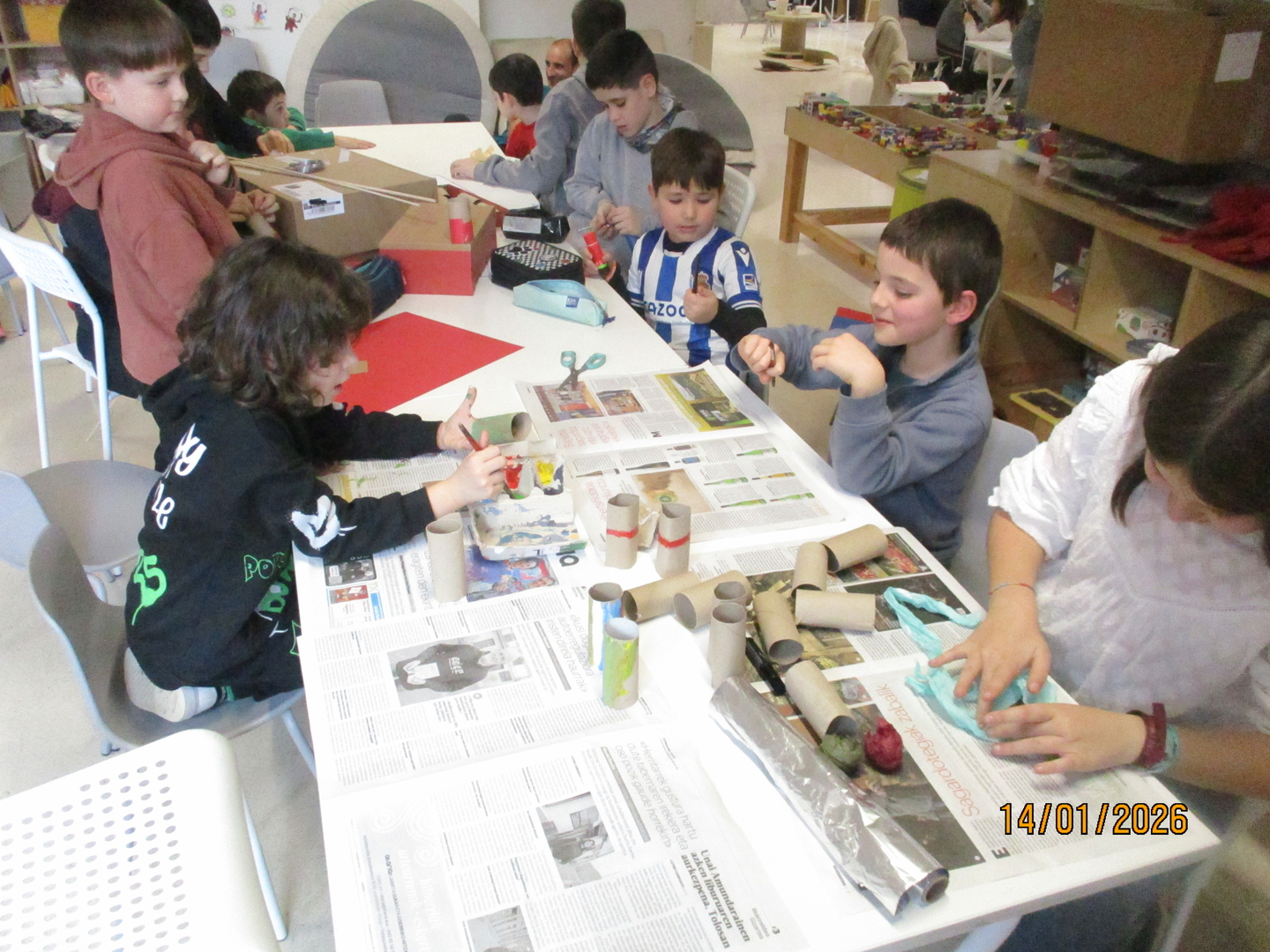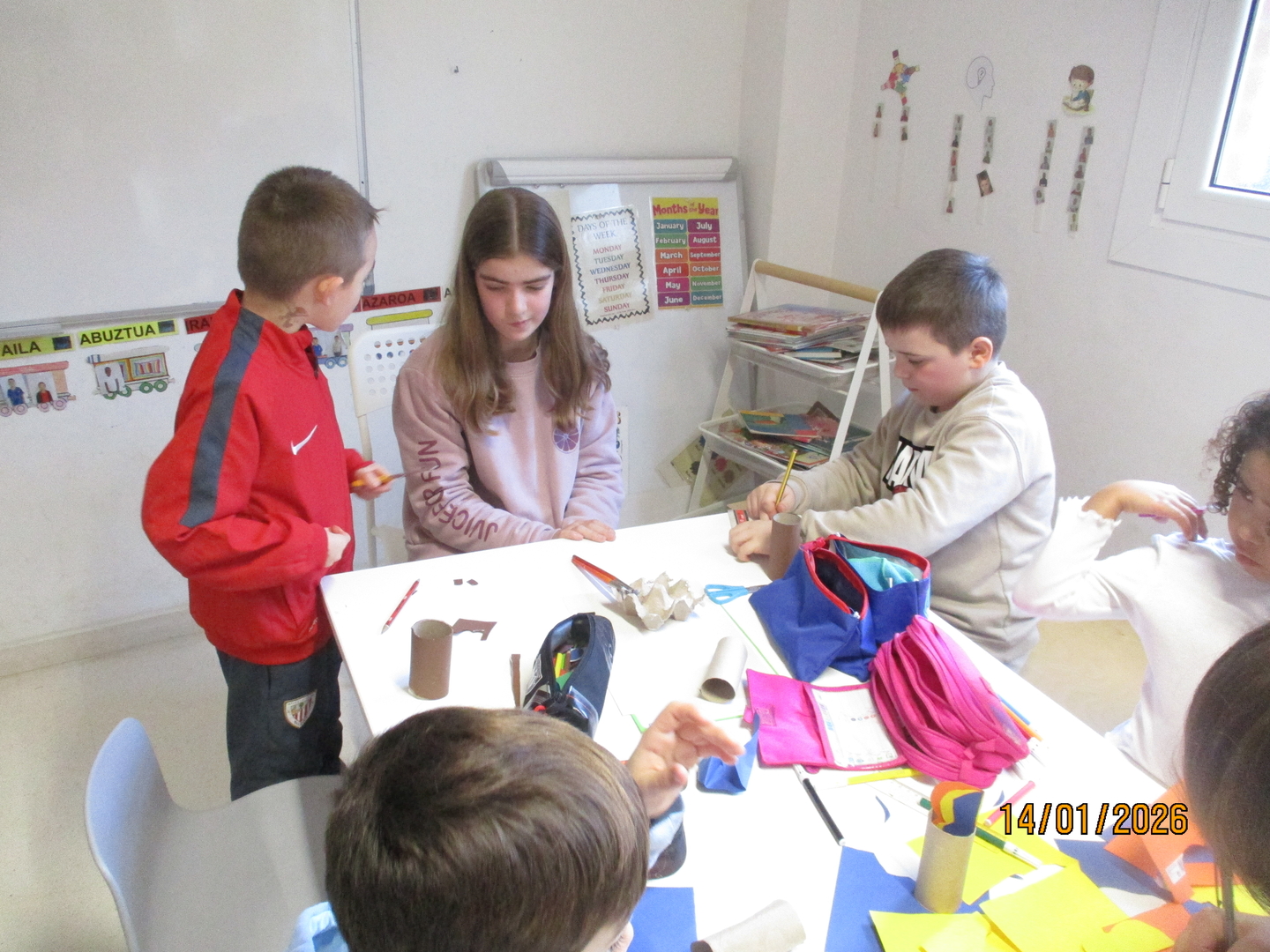 Ikasle zaharrenek prestatutako testu mota horrekin, LH1-2ko ikasleengana joan eta eskulana egiteko jarraibideak azaldu dizkiete